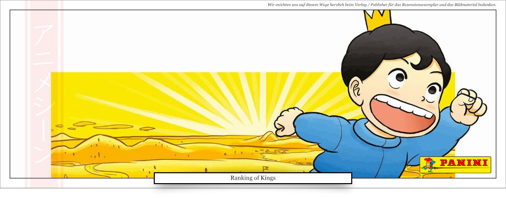Wer Lust auf eine großartige Story hat und wem der Zeichenstil völlig egal ist, der sollte unbedingt einen Blick in die Manga-Serie „Ranking of Kings“ werfen. Es lohnt sich.