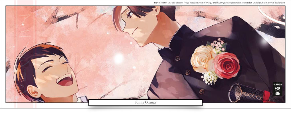 Der Boys-Love-Einzelband „Sunny Orange“ besticht vorwiegend durch seine sanfte Geschichte. Es geht zwar um die sich entwickelnde Beziehung zwischen den beiden, die gar nicht geplant war. Im Kern wird allerdings das Thema Schule abgehandelt und wie wichtig es ist, seine Ziele nicht aus den Augen zu verlieren.