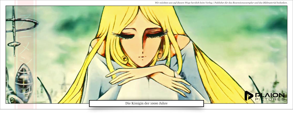 Ich als alter Hase schätze Serien wie „Captain Future“. Ab heute gehört die Anime-Serie „Die Königin der 1000 Jahre“ von „PLAION PICTURES“ dazu. Bei meiner nächsten Reise nach Japan werde ich mal nach altem Material in den Antiquariaten Ausschau halten.