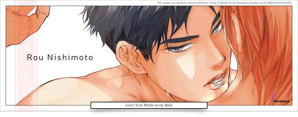 Der Boys Love Einzelband „Leave Your Marks on my Back“ von „Hayabusa“ weiß zu überzeugen. Seine schonungslose, direkte Art gefällt. Einige Panels und explizite Szenen sind definitiv etwas fürs Auge.