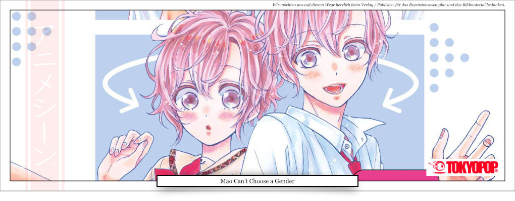 Die Manga-Serie „Mao Can’t Choose a Gender“ von „TOKYOPOP“ gefällt. Zum einen wird uns als Fans eine spannende, witzige Geschichte präsentiert und wir werden dazu animiert, über das Thema geschlechtliche Identität nachzudenken, was gar nicht mal so abwegig ist. Dieses Thema gehört aktuell zu unserer Kultur. Wir sollten uns daher die Zeit nehmen, uns damit auseinanderzusetzen.