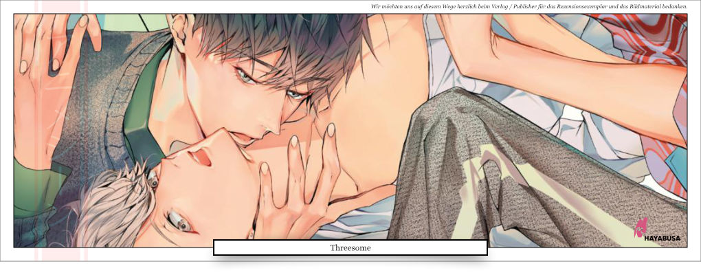 Beim Boys-Love-Einzelband »Threesome« von »HAYABUSA« brennt bestimmt keine Milch an. Hier geschieht so viel, Langeweile gehört gewiss nicht dazu. Atsushi kann einem stellenweise sogar richtig leidtun. Ich möchte nicht in seiner Haut stecken. Obwohl, wer möchte nicht so umgarnt werden, wie er? Und ein wenig leidenschaftlicher Sex, egal welches Geschlecht, ist auch etwas Feines. Man muss nicht immer alles so steif angehen, wie Atsushi es gewöhnlich tut.