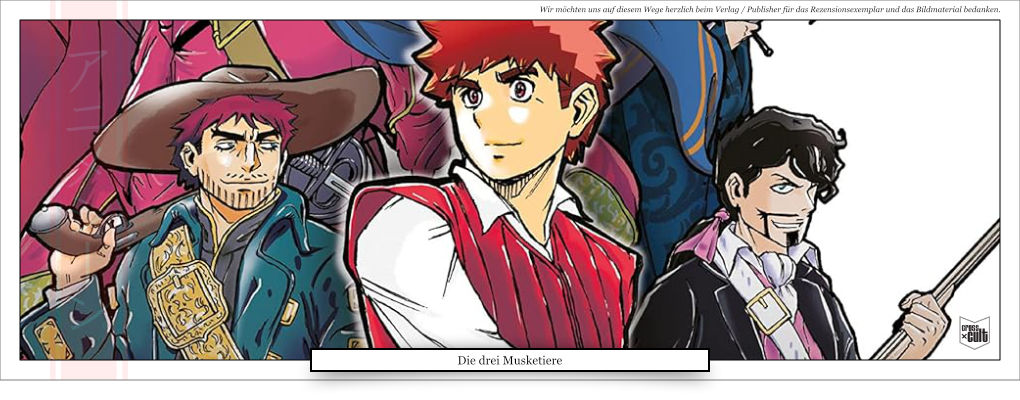 Die Geschichte der drei Musketiere hat in irgendeiner Form in so manchem Genre Einzug gehalten. Sei es in Videospiele, Zeichentrickserien für Kinder oder dergleichen. Tja, und ab heute gehört eine Manga-Serie auch noch dazu, welche mir im Übrigen hervorragend gefällt. Was mir auch ausgezeichnet gefällt, sie orientiert sich ziemlich gut am Original. D. h., ihr braucht euch keine Gedanken zu machen, ob da viel interpretiert wurde. Die Basis ist das, was das Original ausmacht.