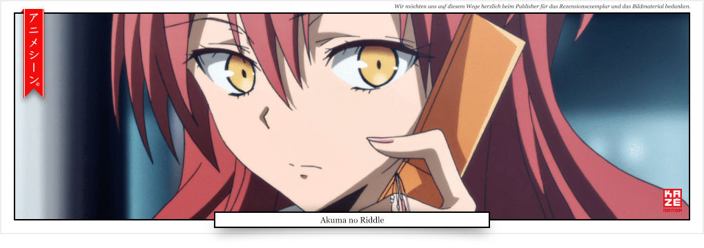 Von „KAZÉ Manga“ habe ich einige Mangas gelesen und Animes geschaut. Oftmals keimte die Frage auf, ob die denn nie daneben greifen? Denn was ich bis dato gelesen/gesehen habe, konnte sich immer sehen lassen. „Akuma no Riddle“ ist der erste Anime, der leider nur Durchschnitt ist. Und dabei hat die Story durchaus Potenzial. Aber dazu später mehr.