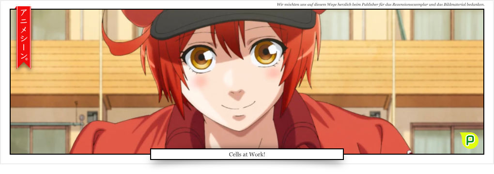 „Cells at Work!“ Ist eine zeichnerisch gelungene Serie, die sich mit dem Körper und seiner Funktion befasst, wenn Viren und andere Widersacher ihn befallen. Man kann durchaus etwas lernen! Auf Grund der Art und Weise, wie der Angriff auf den Körper dargestellt wird, ist diese Serie allerdings eher für das reifere Publikum geeignet. Daher auch die FSK 16 Freigabe.