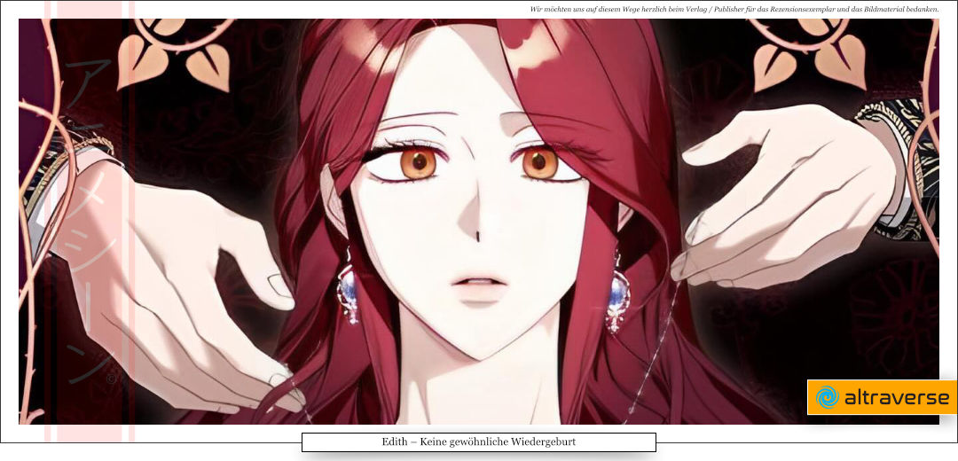 Mit Edith – Keine gewöhnliche Wiedergeburt (흔한 빙의물인 줄 알았다) bringt altraverse einen neuen Romance-Manhwa nach Deutschland, der euch in eine Welt voller Intrigen, Liebe und unerwarteter Wendungen entführt. Autor DOYOSAY und Webnovel-Schöpfer Lemon Frog liefern die Vorlage, während Zeichnerin A-jin die Geschichte visuell zum Leben erweckt. Ursprünglich erschien die Serie zwischen 2023 und 2025 bei Naver Webtoon und Naver Series und umfasst 100 Kapitel. Die deutsche Veröffentlichung startet im November 2025 als Softcover-Großformat in Vollfarbe.