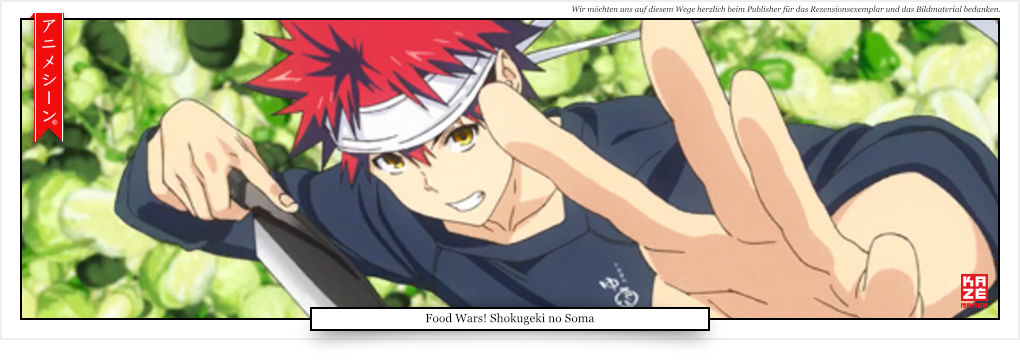 „Food Wars! Shokugeki no Soma“ ist schon eine coole Serie. Sie hat ihren ganz speziellen Charme. Hätte nie gedacht, dass es sich lohnen könnte, eine Serie zu zeichnen, die sich „nur“ mit dem Essen beschäftigt. Obwohl, zu Japan passt sie prima. Schließlich gibt es gefühlt in jeder Straße Restaurants, wie ich ja live erleben durfte. Essen ist in Japan einfach ein ganz großes Thema. Und wie lecker das Essen dort ist, genau das vermittelt diese Serie auf gekonnte Weise.