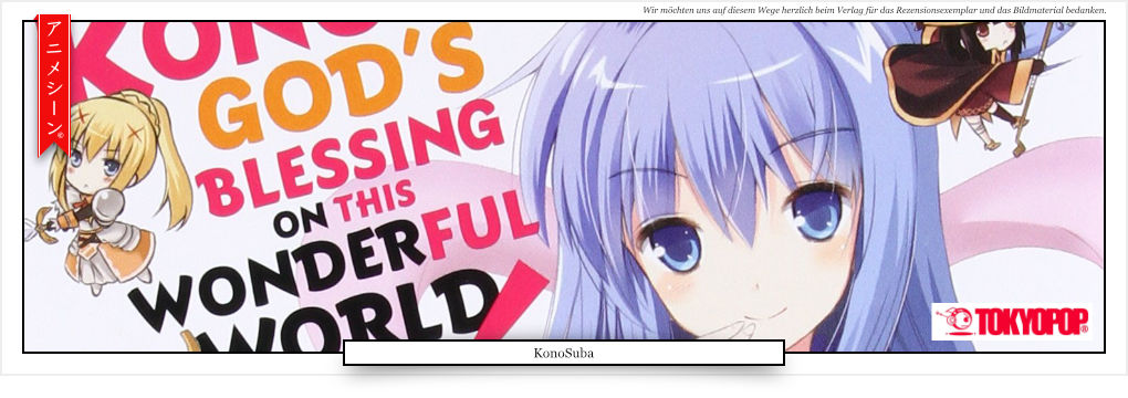 Ende Oktober 2019 startete bei „AniMoon Publishing“ die Animeserie „KonoSuba“, in der der Protagonist nach seinem Ableben in einer Fantasywelt wiedergeboren wurde. Passend zur Serie gibt es nun bei „TOKYOPOP“ den Manga für unterwegs, damit wir die Bissigkeiten untereinander auch im Bus, der U-Bahn oder was weiß ich wo genießen können.