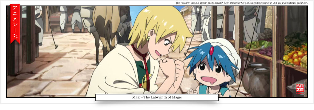 Alte Bekannte aus Tausendundeiner Nacht findet man in der Animeserie „Magi - The Labyrinth of Magic“, welche bei „KAZÉ“ im Vertrieb ist. Es handelt sich um eine liebevoll gezeichnete Serie voller Abenteuer und Magie.