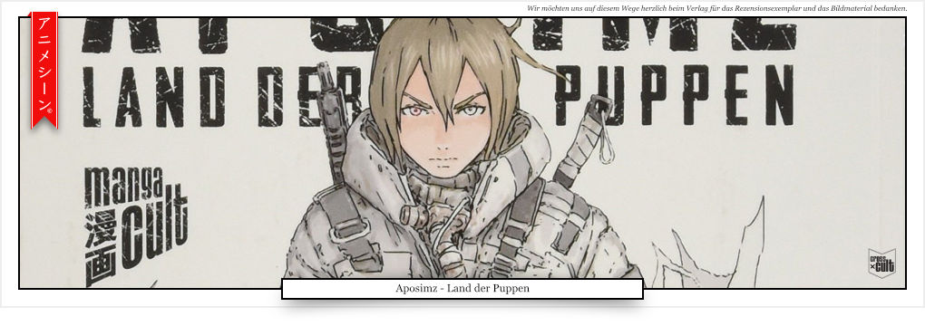 Der Text auf dem Buchrücken dieses Manga besagte, dass hier quasi ein anspruchsvolles Werk für Erwachsene auf klassische Shonen-Elemente trifft. Das kann ich grundsätzlich bestätigen, wobei gefühlt der anspruchsvolle, erwachsene Part überwog. „Aposimz - Land der Puppen“ erschienen bei „Cross Cult“, zeigt ein düsteres postapokalyptisches Szenario.