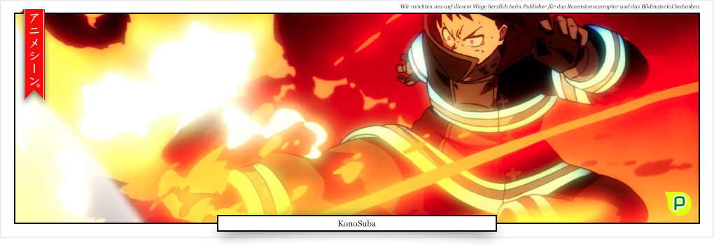 Über die Synchronisation braucht man im Grunde nicht viel sagen. Wir alle kennen „peppermint anime“ und wissen um ihr Gespür für eine ordentliche Synchronisation. Genau so ist es auch bei „Fire Force“, so dass man sich als Zuschauer entspannt zurücklegen und genießen kann, sofern es denn bei einer Serie wie dieser möglich ist. Äh ja …