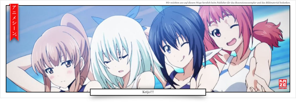 Wenn man sich auf all das einlassen kann, ist dieser Ecchi in seiner abgedrehten Art wirklich unterhaltsam, macht Spaß und ist ideal als Serie für zwischendurch geeignet, um einfach mal abzuschalten. Da die Charaktere stets ernsthaft und ehrgeizig zu Werke gehen, sich die Selbstironie eben nicht auf die Persönlichkeit von ihnen bezieht, kann man „Keijo!!!“ auch seine Daseinsberechtigung als Sport-Anime nicht gänzlich absprechen. Weibliche Sportlerinnen im Fokus bilden zudem eine erfrischende Abwechslung in diesem Genre, was immer noch von einer viel zu starken Männer-Domäne bestimmt wird. Viel wichtiger wäre dieser Schritt natürlich in einer ernsten Geschichte, aber davon gibt sogar noch weniger Beispiele. Der alte Klassiker „Mila Superstar“ wäre spontan das einzige Beispiel ist, was mir dazu einfällt.