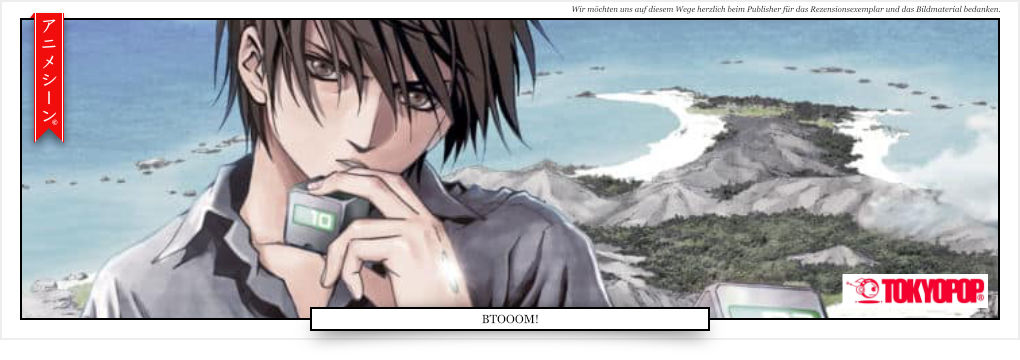 In dieser Review geht es um die knallharte Manga-Serie „BTOOOM!“, welche auch als Anime existiert. Erschaffen wurde dieses Werk von Junya Inoue. Im Vertrieb sind die dicken Wälzer, die man nicht mal so nebenbei lesen sollte, bei „TOKYOPOP“.