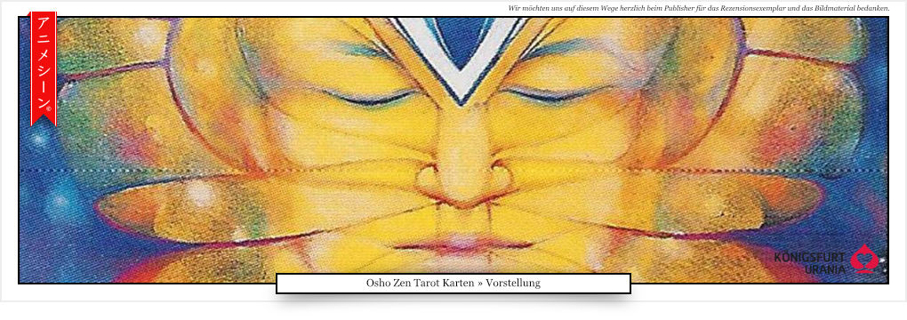 Aus dem gleichen Verlag liegt mir noch ein Tarot-Kartenset von „Osho“ vor, mit dem Titel „Osho Zen Tarot". Tarot-Karten? Ja genau, Tarot-Karten. Ich habe sie mir schicken lassen, weil die Weisheiten, die dort vermittelt werden, sich an dem japanischen Zen-Buddhismus orientieren. Das ist auch der Grund, warum der Mann, der eigentlich Chandra Mohan Jain heißt, sich den Namen „Osho“ gab.