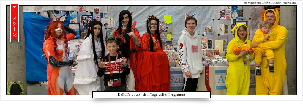 An drei Tagen alles zu sehen, was die DeDeCo 2020 zu bieten hat, ist schier unmöglich (außer vielleicht mit Hermines Zeitumkehrer). Wenn ich mich nicht am Stand von Animeszene aufhielt, welcher uns optisch wirklich gut gelungen war, habe ich mich viel im Händlerraum umgesehen. Es waren in den drei Tagen viele Besucher an den Ständen unterwegs. Auch unser Stand wurde gut besucht. Es gab viele Kunden, die strahlende Augen hatten und glücklich mit ihrer Beute von unserem Stand von dannen gezogen sind. Wir haben also fast alles richtig gemacht. ![]()