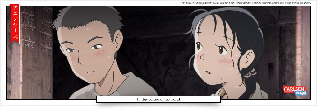„In this corner of the world“ ist eine besondere Geschichte über das Leben einer Frau und den Krieg, welche Werte vermittelt, die in solchen Zeiten gern vergessen oder als unbedeutend abgestempelt werden, so wie Fantasie und Lebensfreude. Dazu viel Wissenswertes über die japanische Kultur.