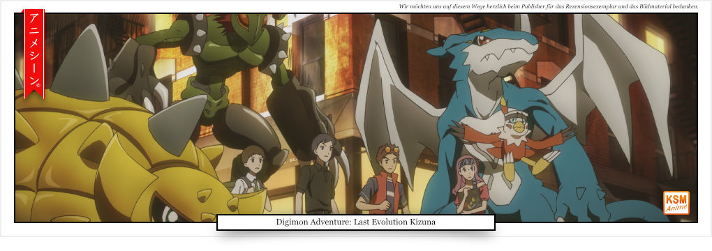 Anlässlich des 20-jährigen Jubiläums spendiert uns die „Koch Films GmbH“ unter dem Label „KSM Anime“ ein ganz besonderes Schmuckstück, gewissermaßen auf dem Silbertablett! Es handelt sich um „Digimon Adventure: Last Evolution Kizuna“! Dieses Sequel, welches fünf Jahre nach den Ereignissen der „DIGIMON ADVENTURE: TRI.-Reihe“ spielt, wird im Dezember in den Regalen zu finden sein. Meiner Meinung nach, ein echt toller Film!