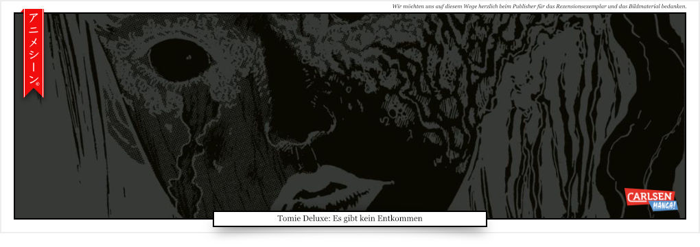 Im von mir ebenfalls rezensierten "Shiver" wurde die tödliche Schönheit Tomie aus der Feder Junji Ito’s bereits thematisiert. Jetzt widmet sich ihr ein über 700 Seiten starker Sammelband mit dem Titel "Tomie Deluxe: Es gibt kein Entkommen", in Form verschiedener Kurz- und Langgeschichten. Wie bei allen anderen in Deutschland veröffentlichten Werken Ito’s, haben wir auch diese Veröffentlichung "CARLSEN" zu verdanken.