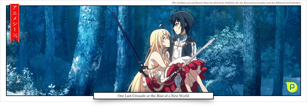 Ich liebe Fantasy Geschichten, besonders dann, wenn es um eine verbotene Liebe geht. Dieses Thema und noch einiges mehr bitte die Anime-Serie "Our Last Crusade or the Rise of a New World" von "peppermint anime". Ich habe mir nur die ersten drei Teile angesehen und bin jetzt schon fasziniert.
