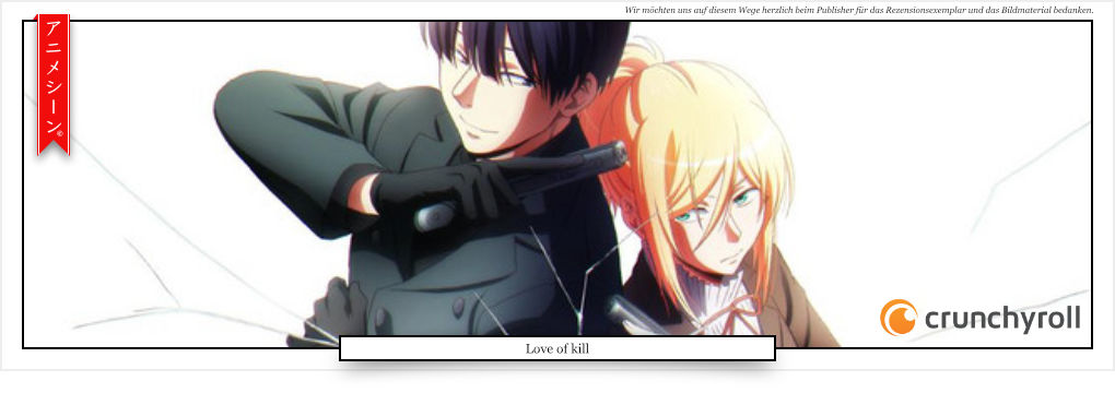 Wer Mysteryanimes mit heiteren Szenen mag und auch ein bisschen Romantik nicht abgeneigt ist, der sollte in "Love of kill" definitiv mal reinschauen.
