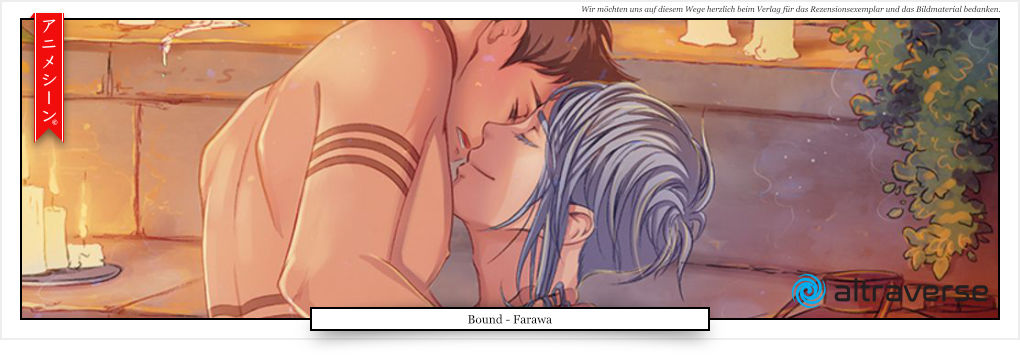 Artbooks sind unter Fans sehr begehrt, ermöglichen sie doch einen Einblick in den Entwicklungsprozess. So findet man oftmals einfache Skizzen, Konzeptzeichnung bis zu detailreichen Zeichnungen. Diese werden durch Informationen ergänzt. Die Autorin und „altraverse“ gehen bei diesem Artbook einen anderen Weg. Nach Textpassagen sucht man in „Bound - Farawa“ fast vergebens. Erklärungen oder Hintergrundinformationen sind nicht notwendig.