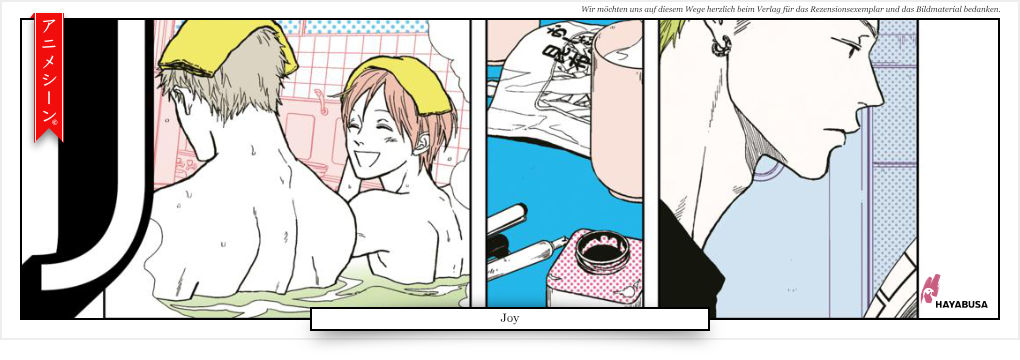 „Joy“ erzählt eine sich sehr langsam entwickelnde Liebesgeschichte, die es eigentlich nie hätte geben sollen. Doch nach langem Ringen und unzähligen Missverständnissen folgen beide Protagonisten dann doch ihrem Herzen. Dennoch wirkt die Geschichte dabei nicht zu langatmig. Besonders gefallen mir dabei die kleinen Details: etwa, wenn Akunes sensible Seite gezeigt wird, als er Gos zerrissene Skizze aufhebt. Er kann es nicht mit ansehen, dass die beiden Charaktere darauf nie eine Geschichte haben werden.