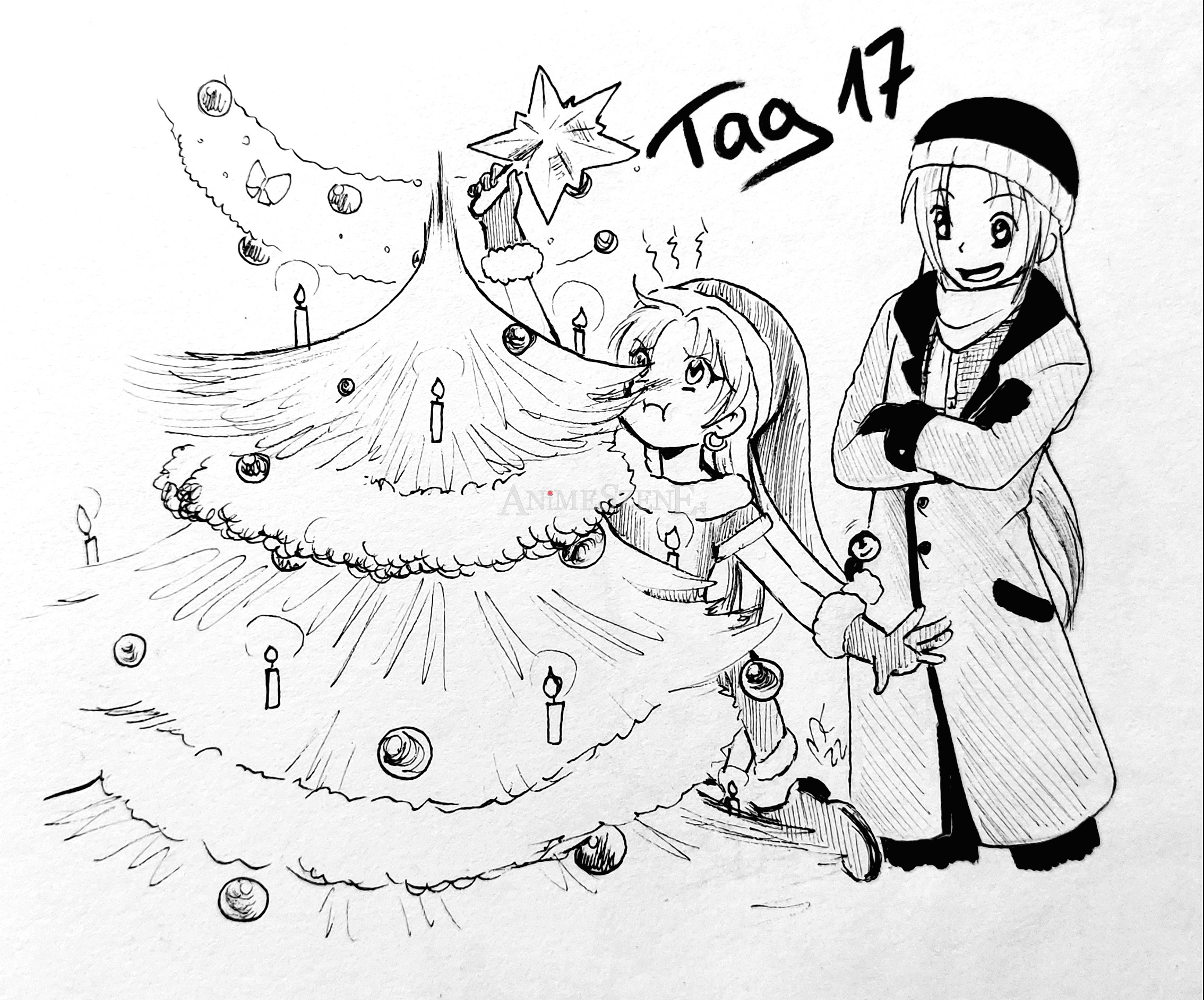 Jetzt wird fleißig der Baum geschmückt.
