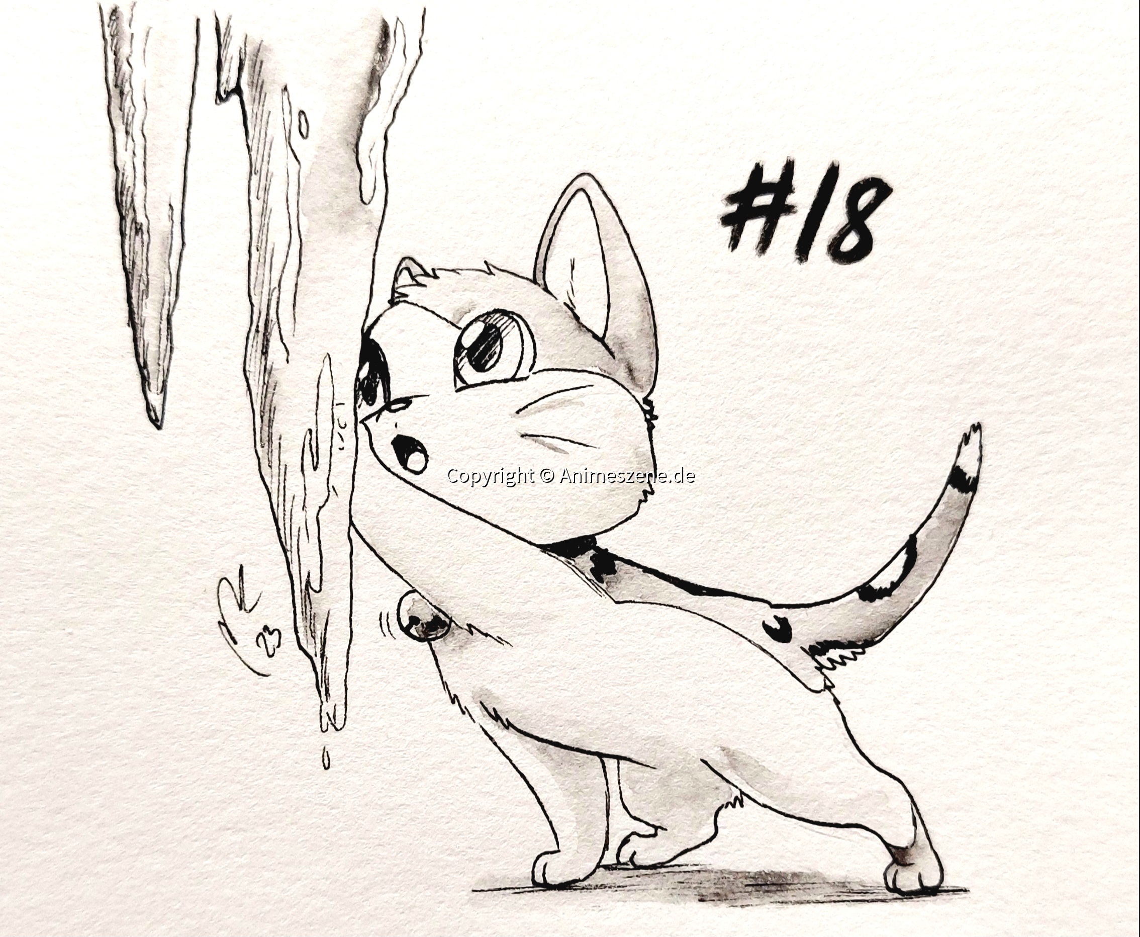 #inktober2023 #cuteanimals #kawaii #mangaart #eigenercharakter #cat #schwarzweiss #aquarell