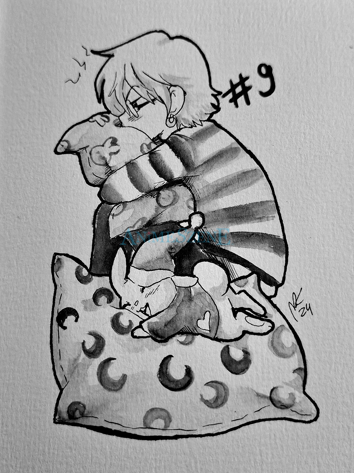 #inktober2024 #cuteanimals #rabbit #animeboy #kawaii #eigenercharakter #aquarelle #schwarzweiss #funny