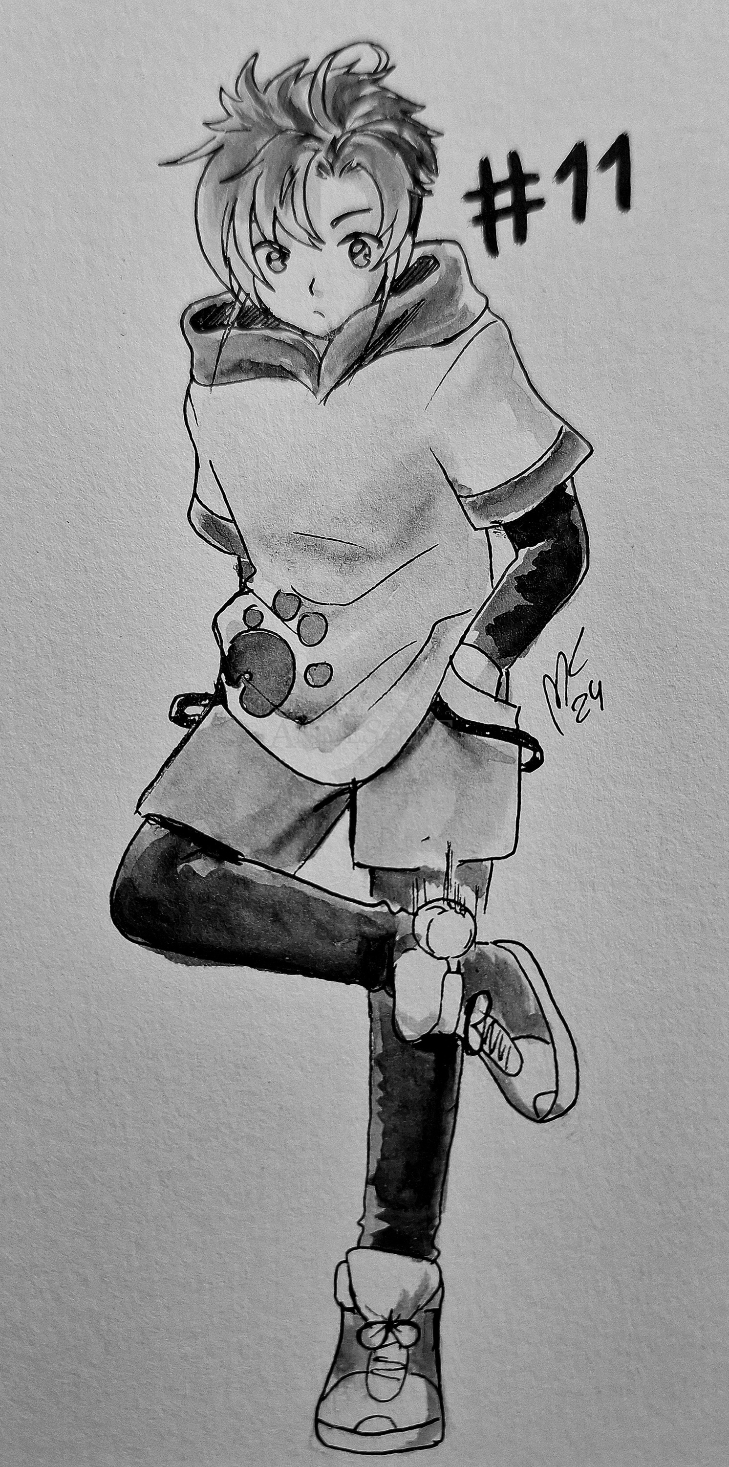 #inktober2024 #aquarelle #animeboy #sport #kawaii #animeart #schwarzweiss #eigenercharakter