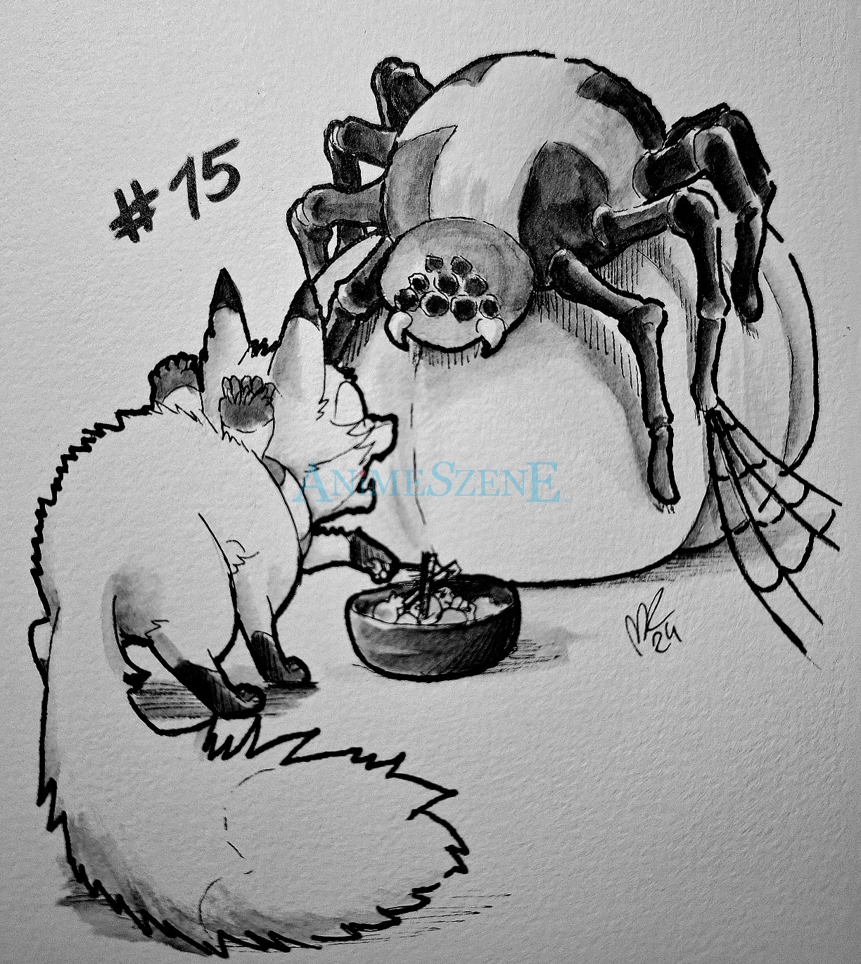 #inktober2024 #spider #fox #cuteanimals #kawaii #eigenercharakter #aquarelle #schwarzweiss #mangaart