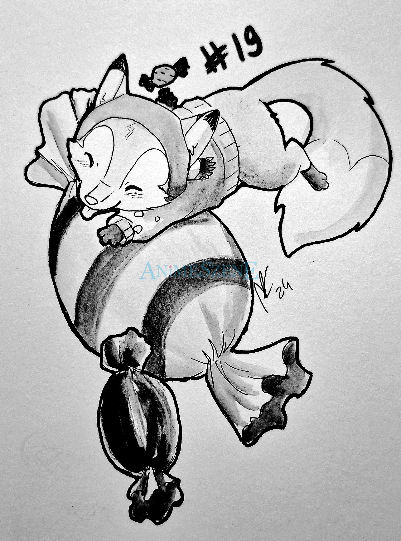 #inktober2024 #kawaii #fox #candy #cuteanimal #aquarelle #schwarzweiss #mangaart #eigenercharakter