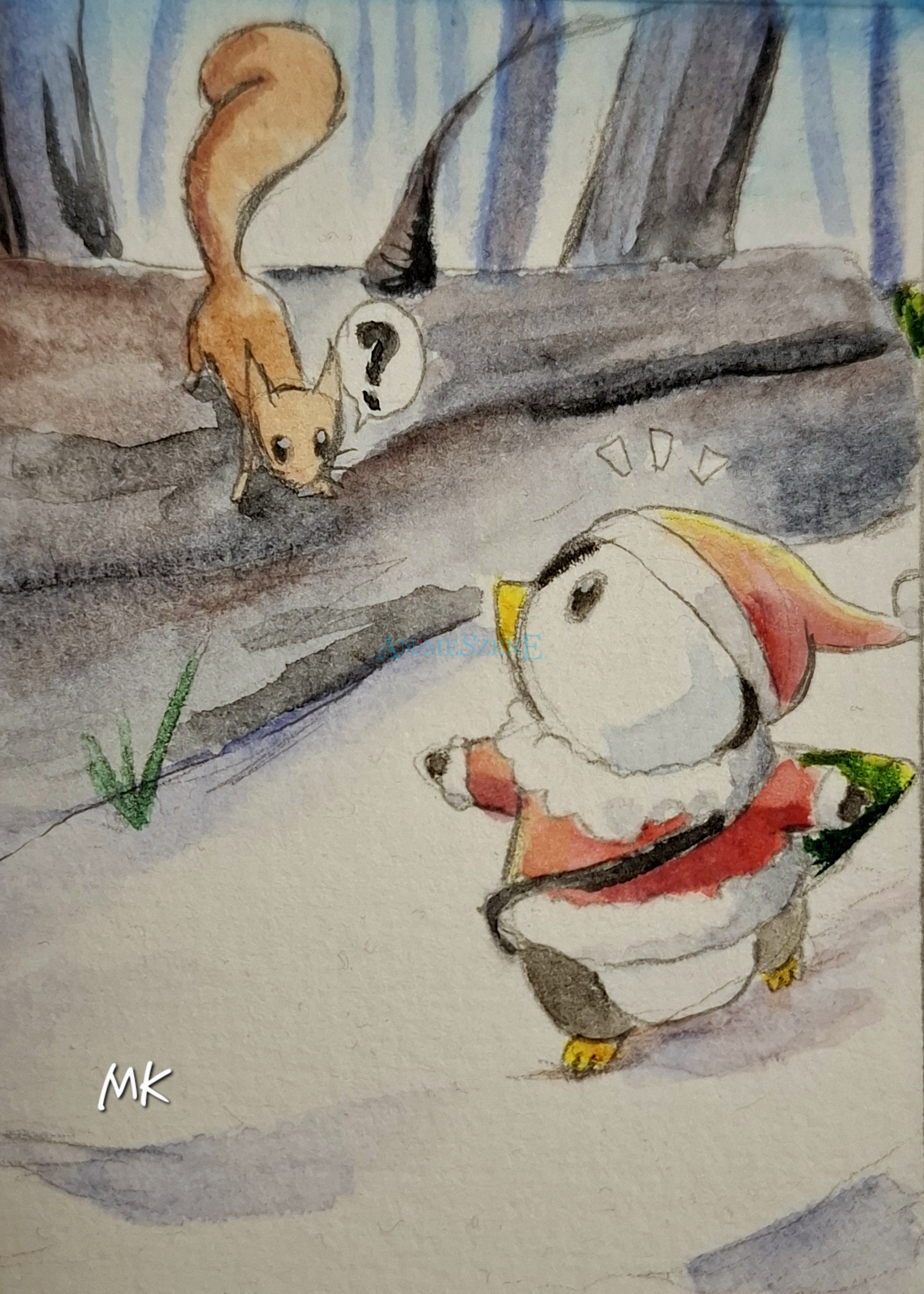 #adventskalender #penguin #squirrel #cuteanimals #kawaii #winter #christmas #eigenercharakter #mangaart #aquarell