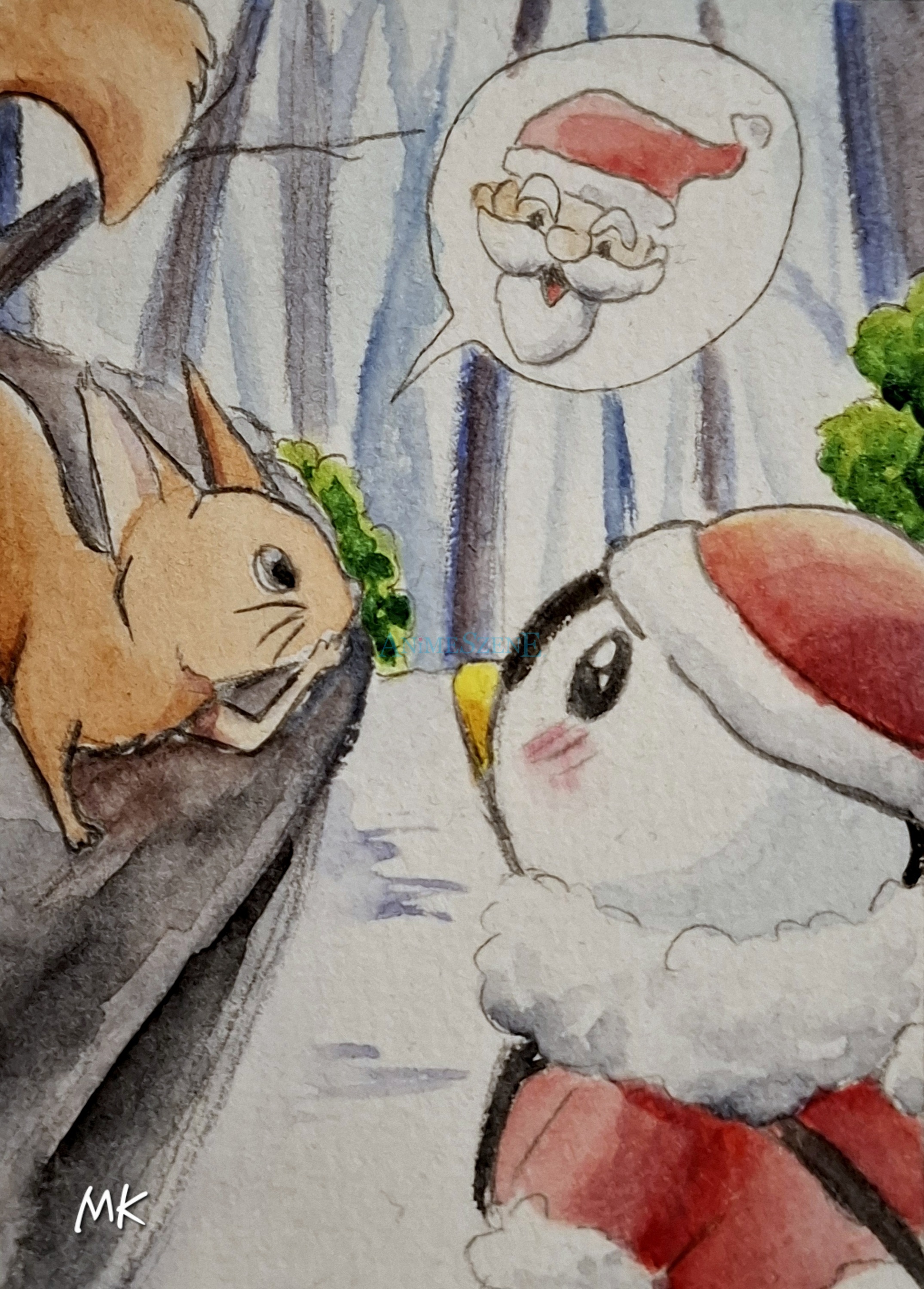 #adventskalender #penguin #squirrel #cuteanimals #winter #christmas #aquarell #mangaart #eigenercharakter #kawaii