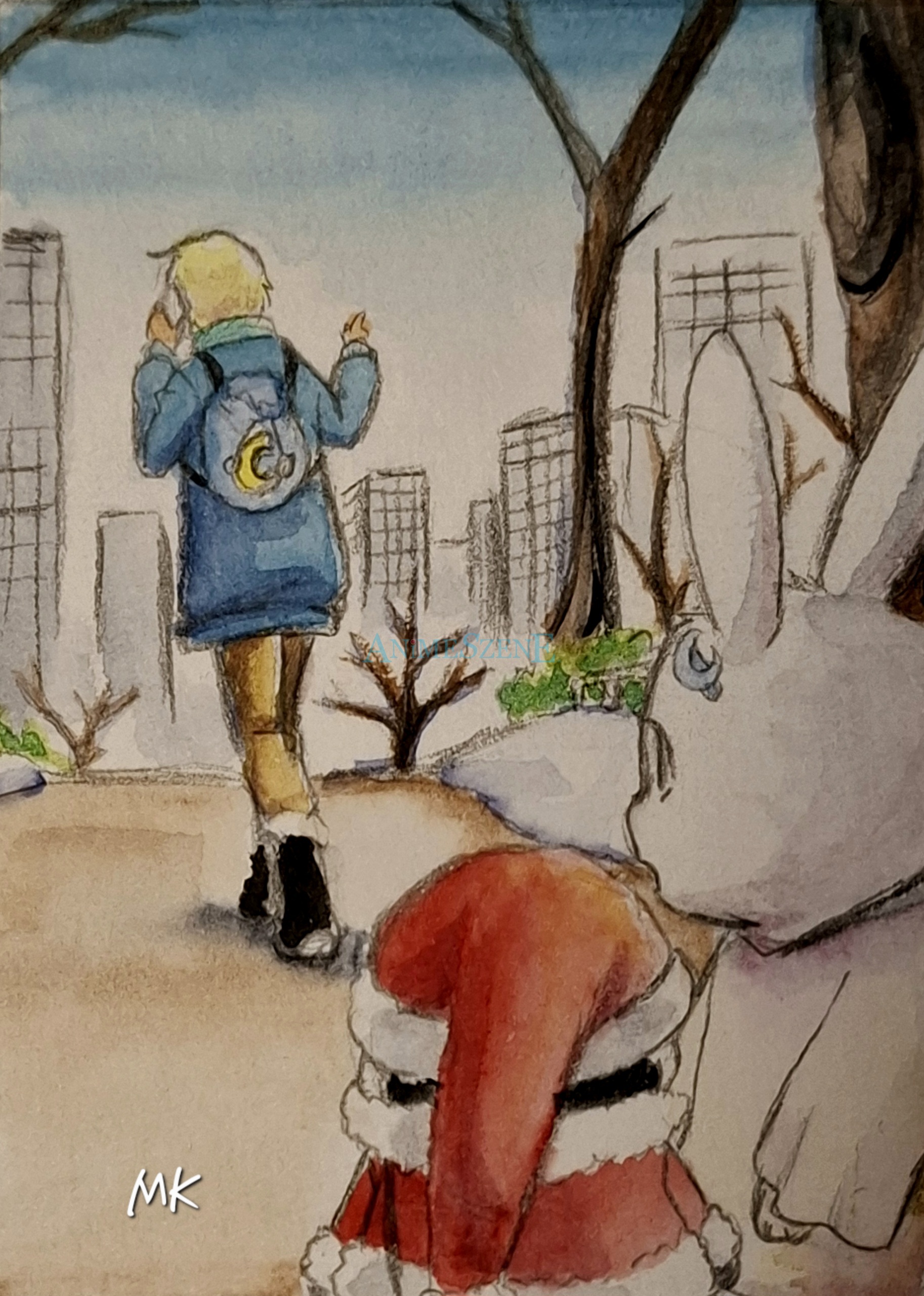#adventskalender #winter #cuteanimals #penguin #rabbit #animeboy #kawaii #mangaart #eigenercharakter #aquarell