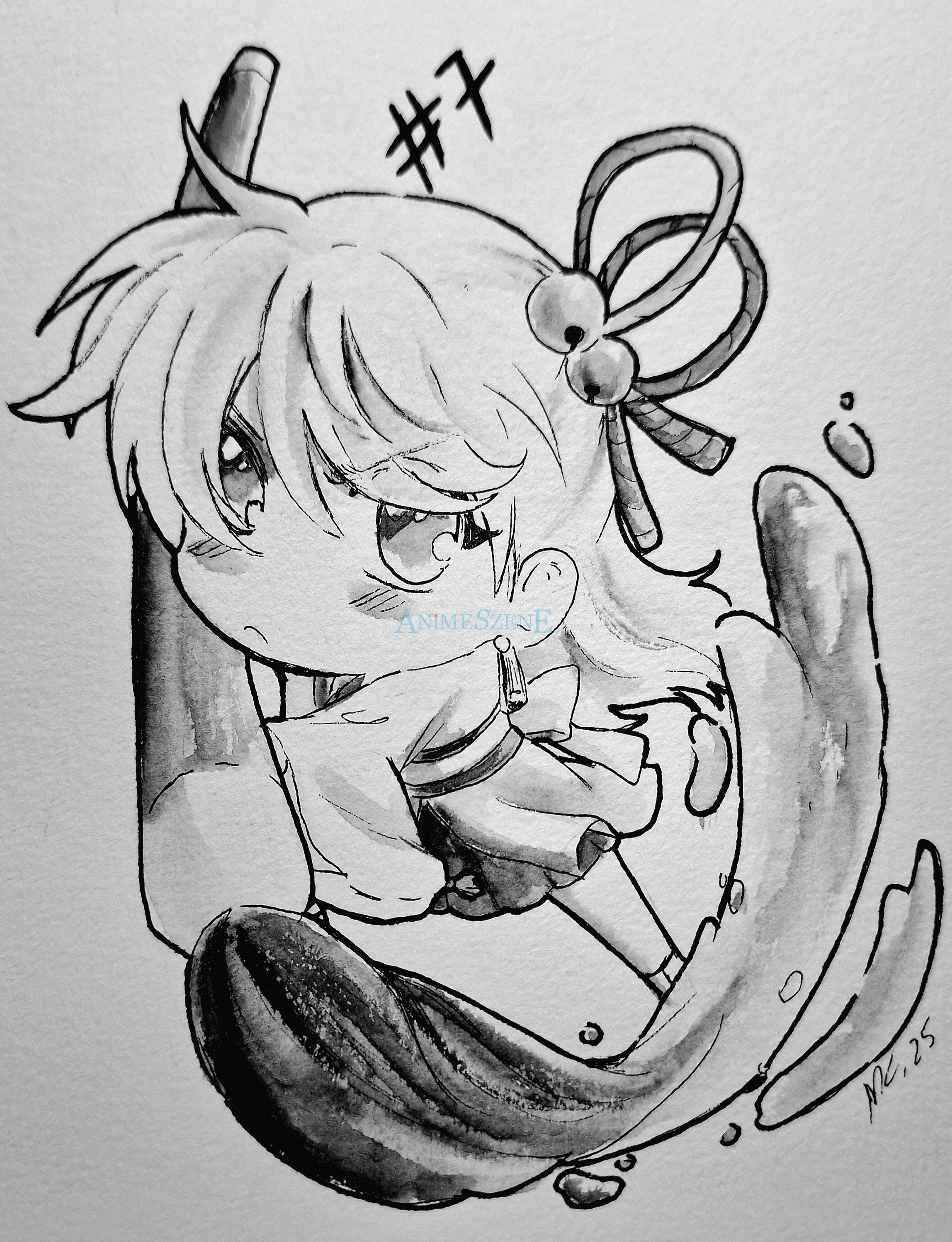 #inktober2025 #legacyofsun #emi #pinsel #cute #kawaii #eigenercharakter #animeart #mangaart #animegirl #chibi #chibiart #aquarell #schwarzweiss