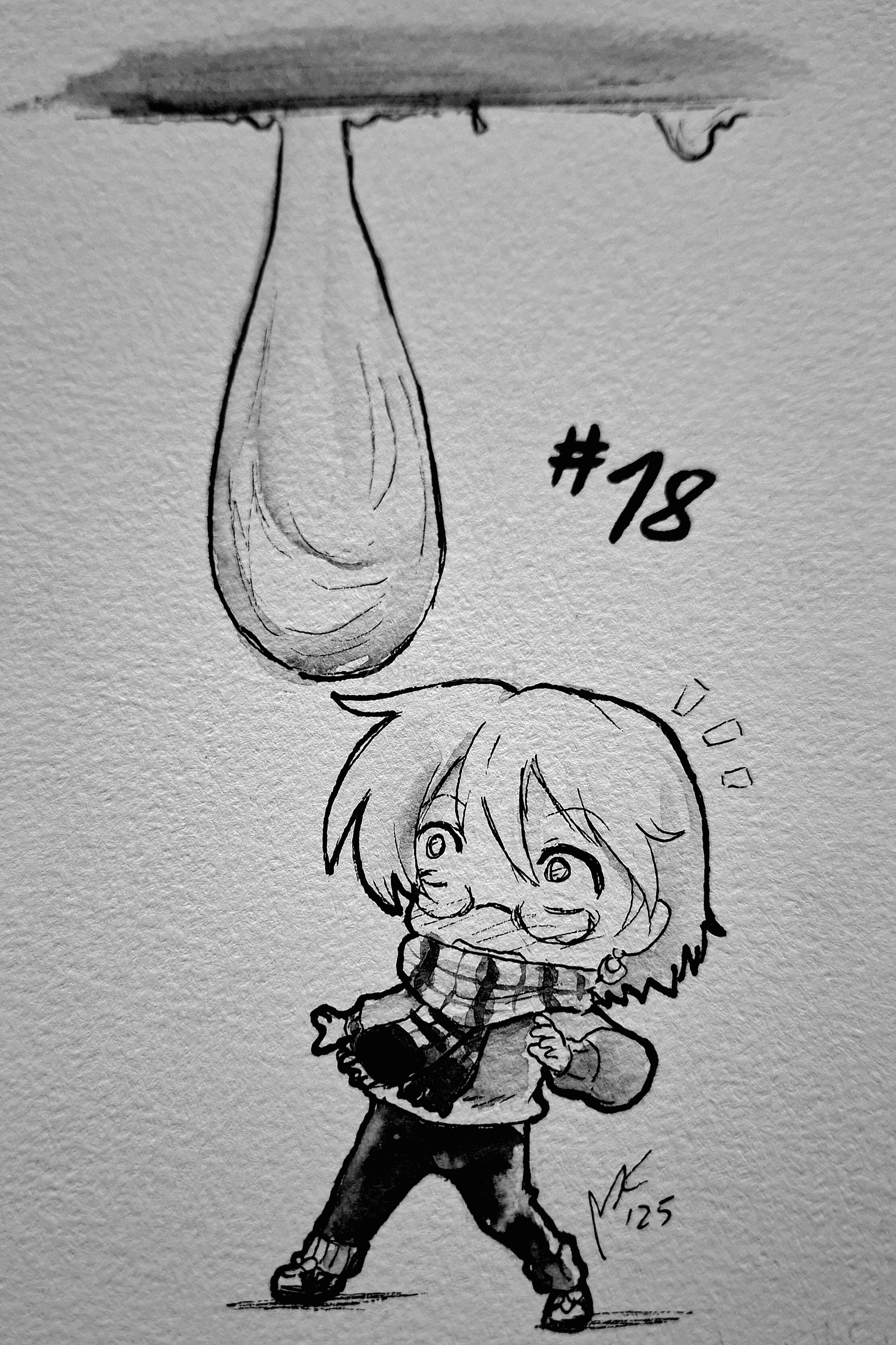#inktober2025 #legacyofsun #yuen #eigenercharakter #tropfen #chibiart #cute #kawaii #aquarell #schwarzweiss #animeboy #mangaart #funny