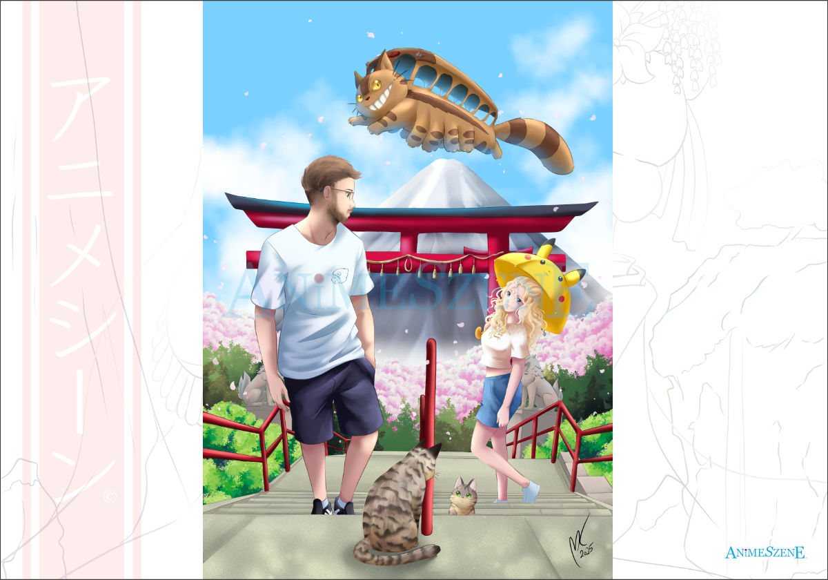 For this deeply romantic commission, we were asked to create an anime-style illustration inspired by “Your Name” – a heartfelt wedding gift from a client to her son and his future wife.